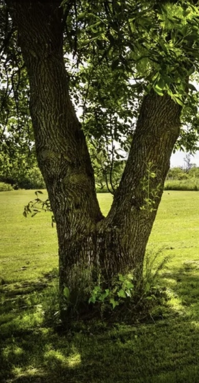 Un arbre dont le tronc se dédouble (voir photo ci-dessous) peut être l’indice d’une faille souterraine ou d’un courant d’eau. Ces anomalies de croissance témoignent d’une lutte permanente entre la vitalité naturelle et l’énergie perturbatrice.