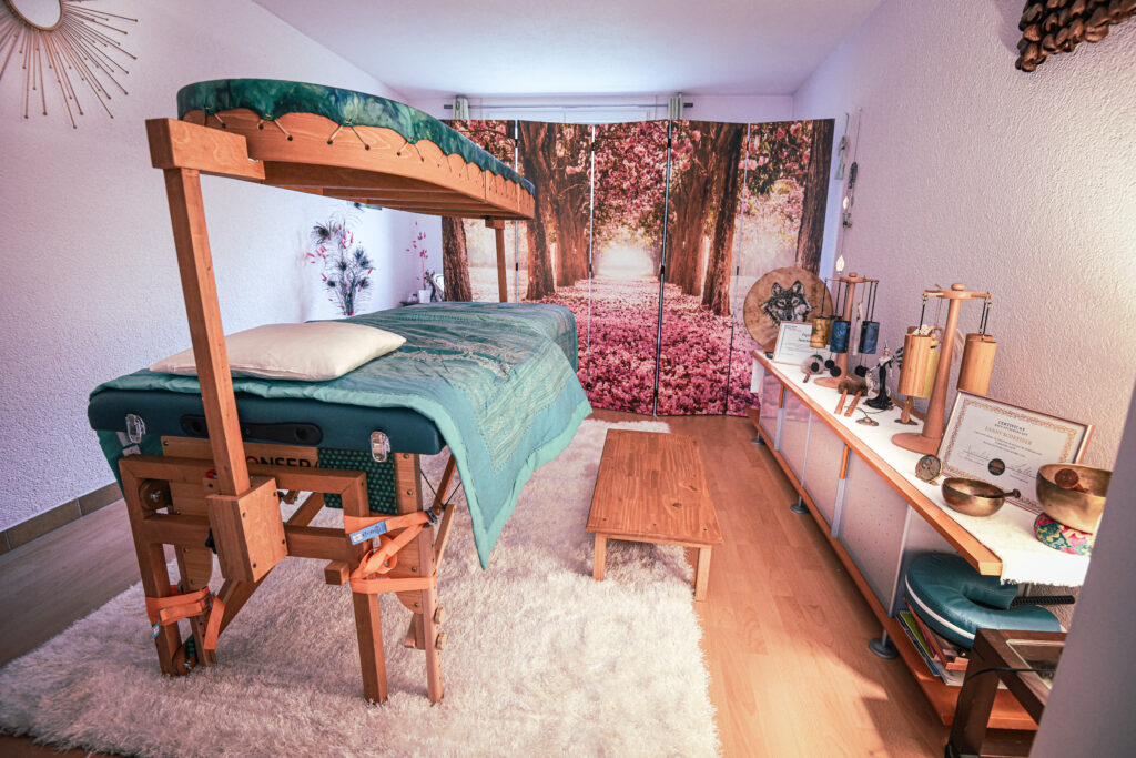 Que ce soit pour un soin énergétique, un soin sonore, un massage énergétique ou un moment de formation, cet espace est conçu pour accueillir en toute bienveillance et favoriser l’ouverture, la sérénité et l’unité.